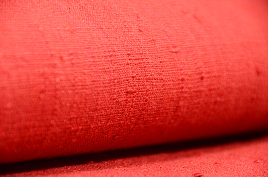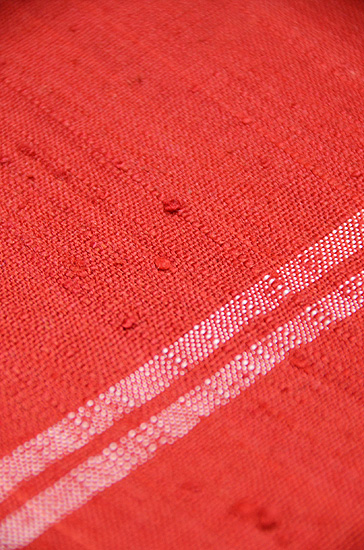緯糸を赤で通して縦糸を変えているので、曖昧な色や格子模様に見える柄が複雑にからみあっています。