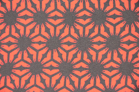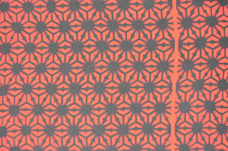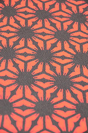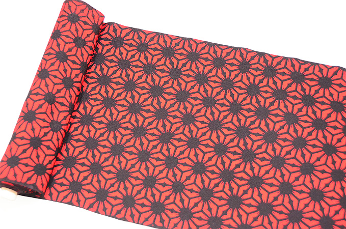 赤い鬼シボ縮緬に、黒くきっかりと麻の葉文様が描かれています。
