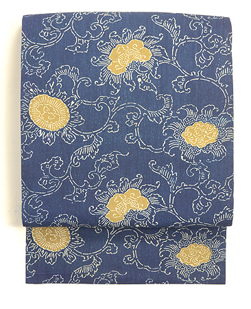 浦野理一作 藍縮緬地万寿菊染名古屋帯