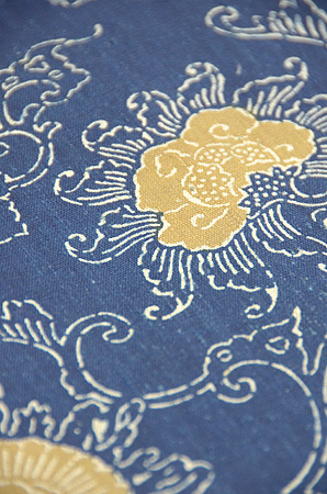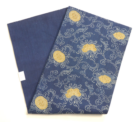 藍地にさっと刷毛で描いたような、勢いある万寿菊。