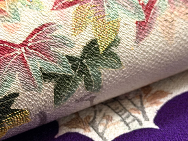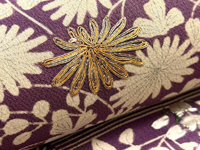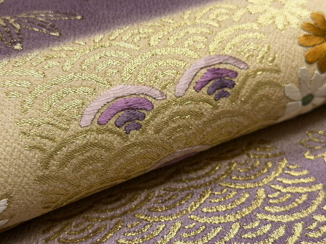 丸帯崩しなので、金と紫の華やぎの中にも落ち着きが見られます。