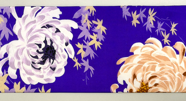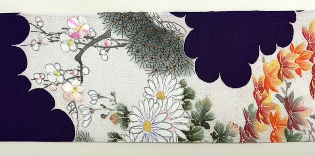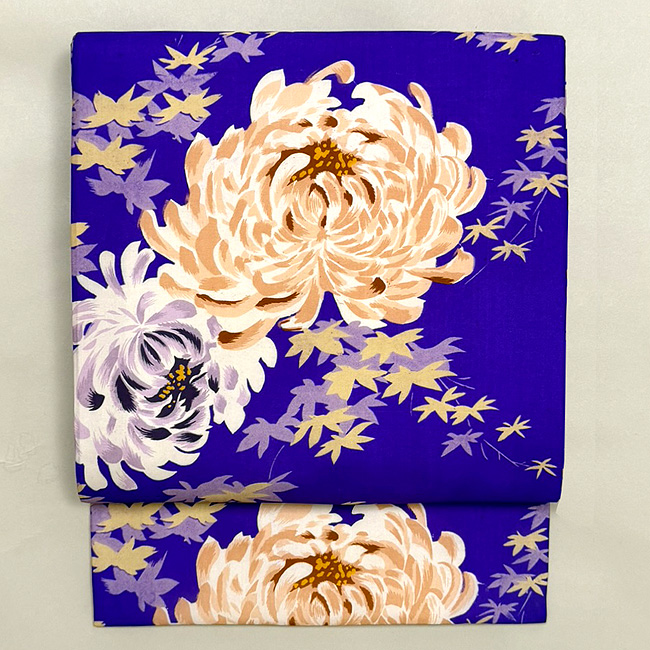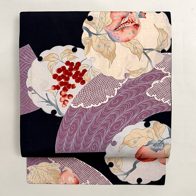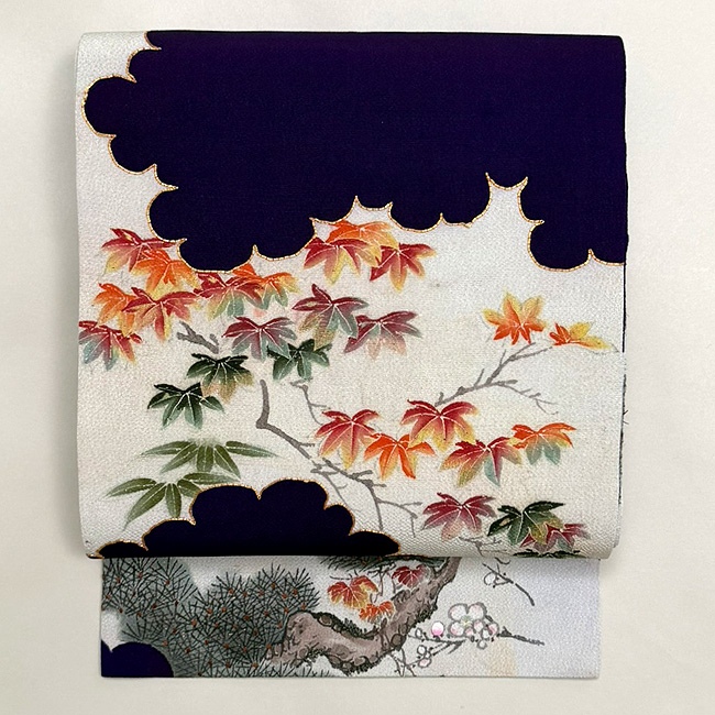 濃い紫と紅のコントラストが冴え渡る帯となっています。