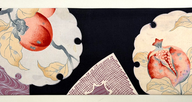地紙には雲取りに観世水、雪輪には4種のフルーツ。