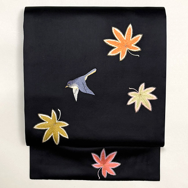 青海波に笹竹・桐・菊・紅葉刺繍名古屋帯