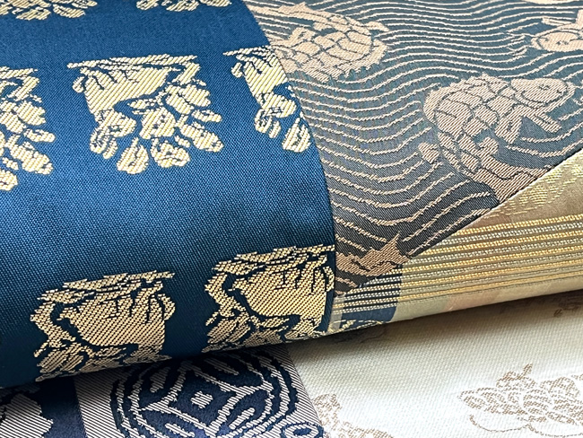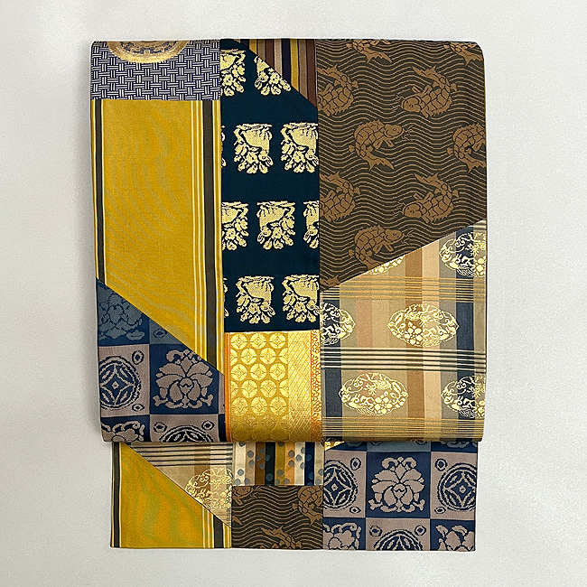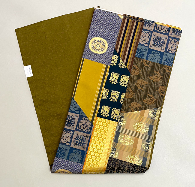 龍村製と思われる帯地を縦横に使った全通の袋帯です。