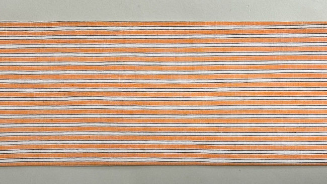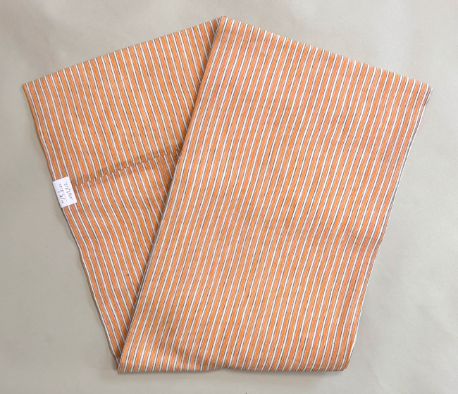 洗い朱のかわいい縞模様で、夏の名古屋帯を作りました。