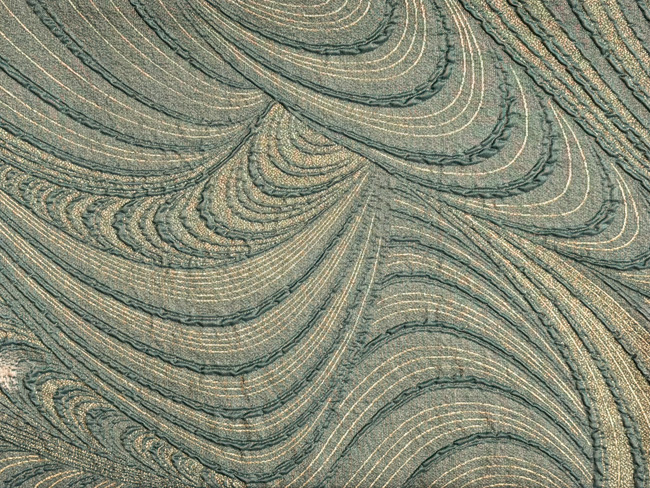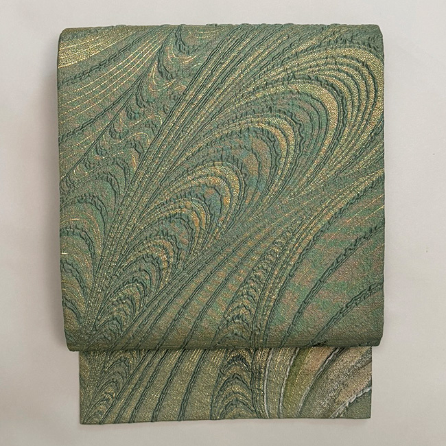贅沢な立体感のあるふくれ織帯です。流水のようにも孔雀の柄のようにも見えます。
