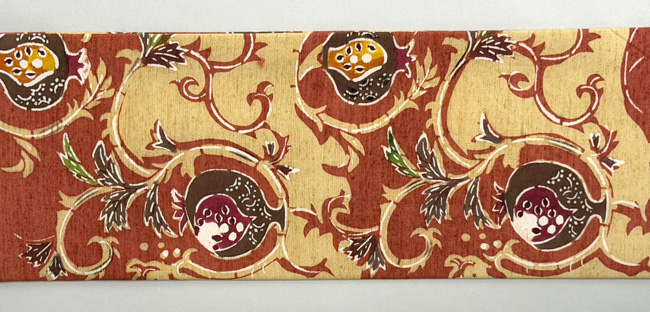 柘榴をあしらったユニークな唐草文様の名古屋帯です。