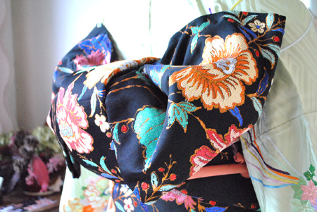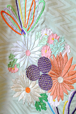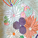 その花くす玉が色取り取りの糸で刺繍された豪華かつとてもめずらしい一着。