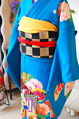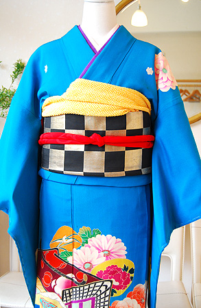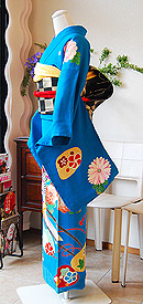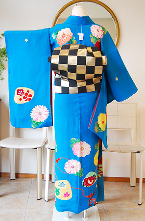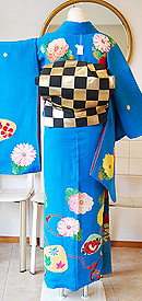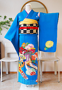 鮮やかな濃い水色地の可愛らしい中振袖です。