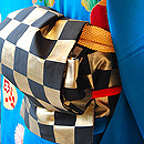 上半身は五つ紋に菊の文様が入り、すっきりとした印象。