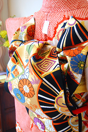 しっかりとした厚手の帯芯が入った締めやすい帯ですので、帯結びをいろいろとお楽しみ頂けると思います。