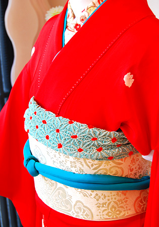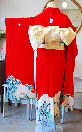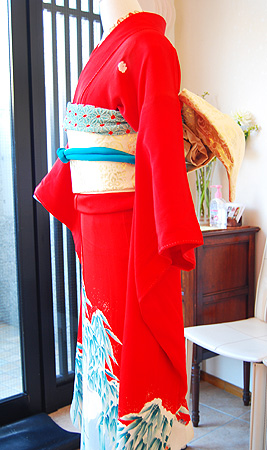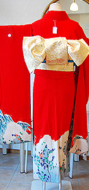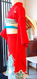 朱赤の地色が成人式やご婚礼など主役の装いとしてふさわしく、アンティークならではの世界観を表現できます。