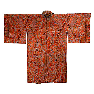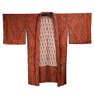 お店では、どんなデザインになるかをお客様のご要望をお聞きしながら考えて行きます。 裏地は薄手のブロックプリントサリーで、羽織紐はオリジナルとんぼ玉でご用意。 コート2種と道中着のお仕立ても承ります。 お仕立て後のお渡しは秋になります。