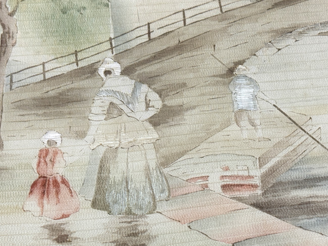 ネーデルラント地方の春の情景が豊かに表現された名古屋帯です。