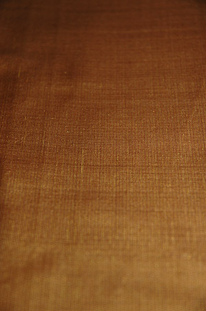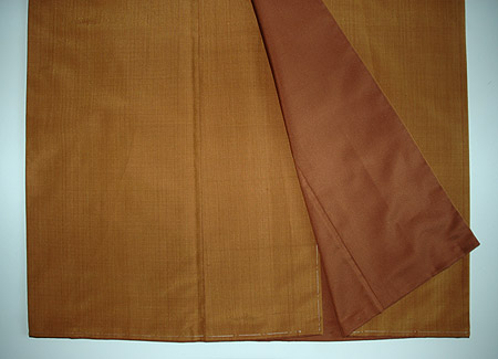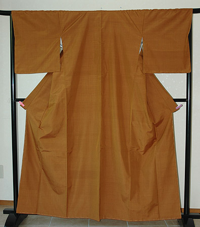 平織りの経縞ですが、遠目に無地に見えるほど細いため帯び合わせのしやすい着物です。 普通黄八丈は無地のものは色ムラが出やすいため、ほとんど商品として流通することはありません。 そんな中、ほとんど無地に見えるこの1枚はなかなか面白い一枚と言えるでしょう。