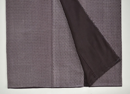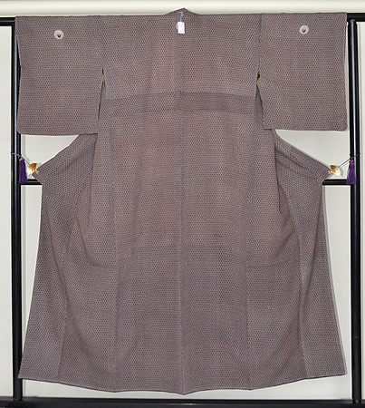 こちらの江戸小紋は赤みの暗い灰色とでも申しましょうか、落ち着いたお色です。 後身頃に共布で接ぎがあります。 丸帯崩しの名古屋帯、大正更紗の帯など時代を経た帯がよく似合います。