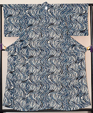 楊柳縮緬に全面流水の図です。 素材と柄とが見事に調和し、お召になることで数倍素晴らしくなる着物です。 川端さんのコレクションの中の1枚で、余談ですが特に彼女らしい一枚と感じました。