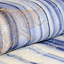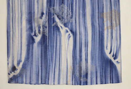 錦紗の変わり織に滝模様が描かれ、気持ちよさそうに泳ぐ金銀の鯉が織出されています。 袖が長いので大きくお仕立て直しをすることができます。