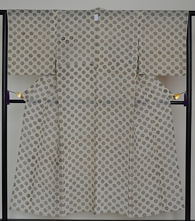 経緯苧麻の重要無形文化財 小千谷縮です。 小千谷縮は緯糸シボを出す分、幅広に織ることにより、1.5倍の労力を要するそうです。 しかし買値は1.5倍とはいかず…生産反数は去年の場合越後上布の40反に対し、小千谷縮は2反のみ。 貴重な一枚と言えるでしょう。