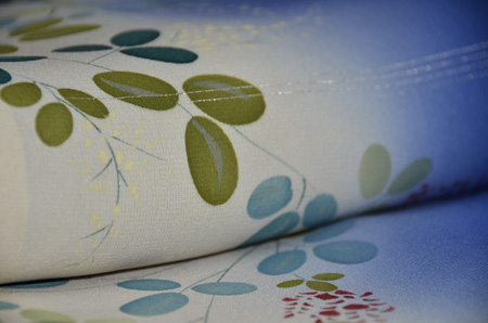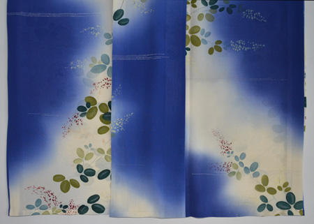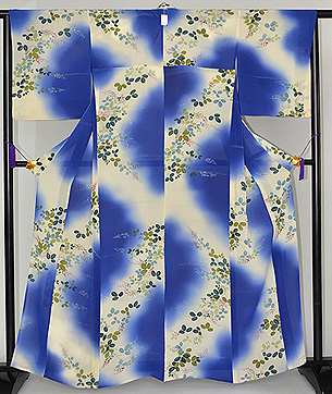 全面に萩がこぼれるように咲き乱れています。 地の美しいぼかしに色焼けはありませんが、左内袖に2か所小穴があります。 きちんと補修してありほとんど目立ちませんが、お手に取ってご覧の上お求めください。