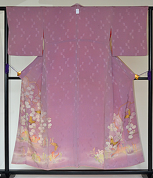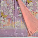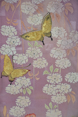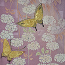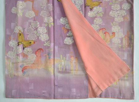 桜、蒲公英、つくし、と春の草花に蝶々が舞う散歩着です。 こんな光景は今なかなか見られなくなりましたね。 繊細な、と言うよりは素朴で温かみのあるタッチで描かれ、それがこのお着物の良さになっているのでしょう。 まさに春を纏うお着物です。