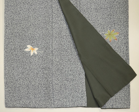 グレー地青楓一ツ紋付下 上前 グレー地青楓一ツ紋付下 上前  グレー地青楓一ツ紋付下 質感・風合