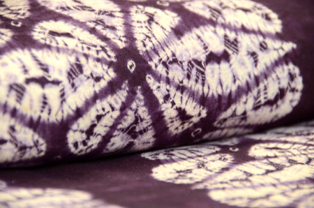 紫草の根の色を染料とする紫根染は、色を布に定着させるために膨大な時間を要する上、近年、染料となる根の入手が難しくなってきたこと等から、風合、特徴、堅牢度を失わないように工夫された化学的方法も取り入れ、更に高度な絞り技法の開発と、その技術者の養成に力を注いでいます。