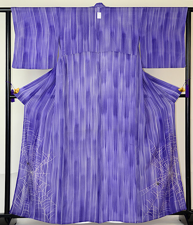 ぼかしの裾に大きな蜘蛛の巣が、美しくマッチングしています。 蜘蛛の刺繍がなぜかエレガントに見えてきます。 裄はいっぱいです。