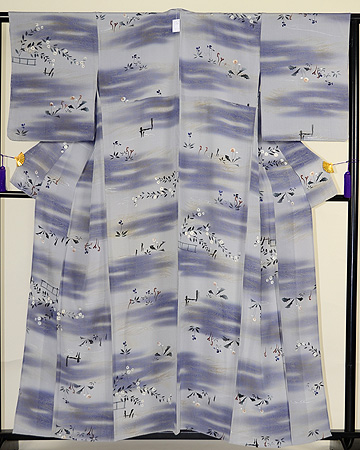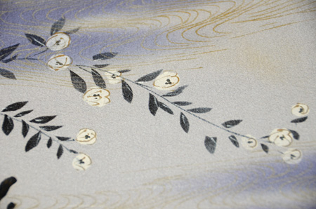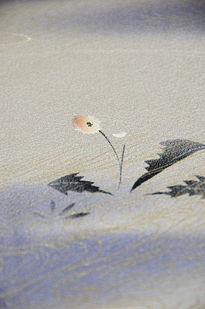 春野の花が可愛らしく咲いています。 どちらかと言えば春先の花ですが、寒色が使われているため、あえて春の花を単衣にして今の季節に纏おうかとしたもののようです。 お仕立て直しで大きくなります。