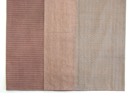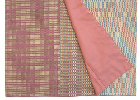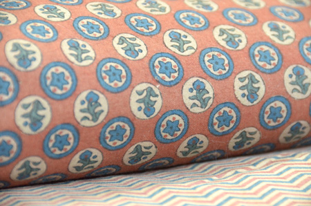 茜色系の大正更紗を中心にお仕立てしました。 幾何柄や微笑ましい花の柄を素朴な色で表現されています。 綿の風合いを活かした軽やかな着心地です。