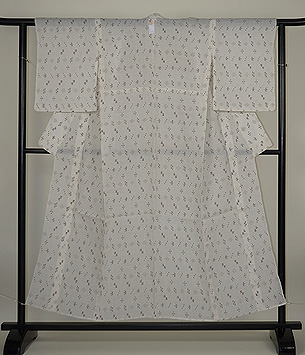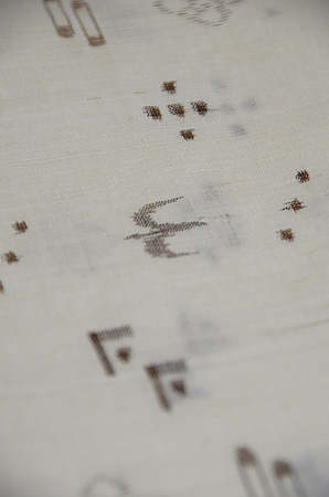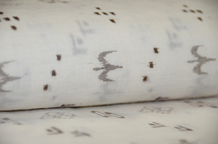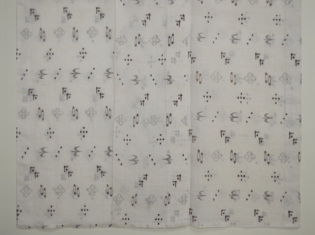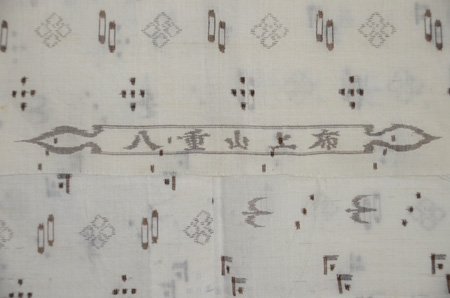 自然の風物を織り込んだ沖縄の典型的な織物です。 現代物は大きな柄で綺麗な色物がありますが、これは一昔前の作で、図柄もかわいい大きさで何より苧麻の済んだ白味が清潔感あふれています。 貴重な1枚といえます。