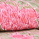 5種の花が咲き乱れた賑やかなお着物ですが、後から絞りが乗っているので、その賑々しさを抑えて、程よく落ち着いたバランスの良い小紋になっています。 色の具合も良く考えられていて、お花がかわいく匂い立っているような風情が感じられます。