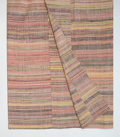 これは理一の作品と思われます。 糸が優しく、細やかな暈しが入っています。 明るいお色で単衣なので、今の季節にすぐお召しになれます。