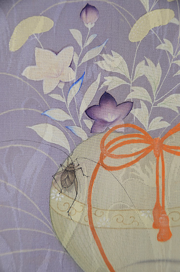 秋野に虫かごの絵羽織 ご売約済 着物18-4-23 お仕立て直し