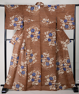 お仕立て直しで、たっぷりとサイズのある上布をご紹介します。 昭和中頃の縮ですが、デザインも色も可愛く上品で、時代感が良く出ています。 生成りの帯で、優しく決めたいですね。