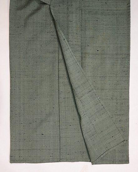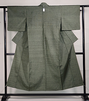 この色は、ざざんざ織りに多く見られます。 われわれ日本人のどなたにも良く似合い、帯合わせもやさしくて、汚れにくい、飽きがこないと、よいよい尽くしで、着心地もさぞかしと言うところでしょう。 単衣なので、長くお召しいただけます。