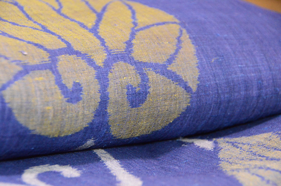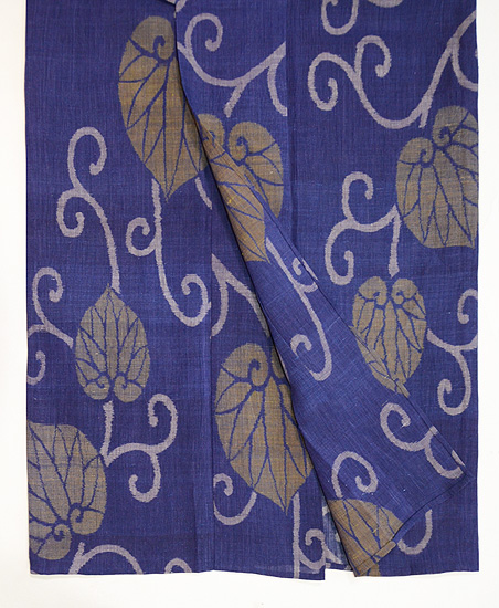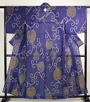 葵唐草文様小千谷縮 ご売約済 着物19-6-11 お仕立て直し