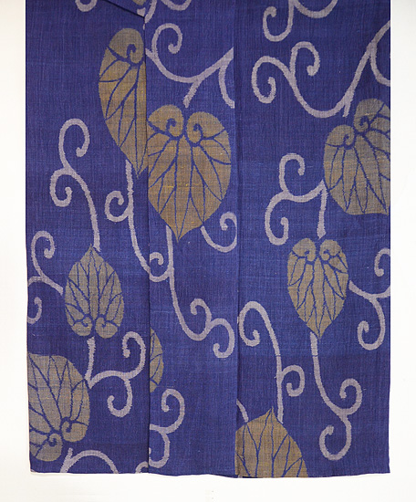 徳川家の御紋である葵が、唐草で永遠に繋がれていきますように、との意味が込められた大らかなイメージのお着物です。 お仕立て直しで、幅も丈もたっぷりとしています。 昔着物は、サイズが大きくなると、ついうれしくなります。 この時代の小千谷縮は、糸がしっとりとしてお体に添い、お召しやすいものと思われます。 まだ大きくなります。
