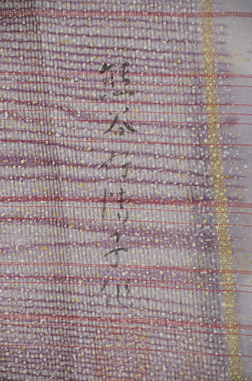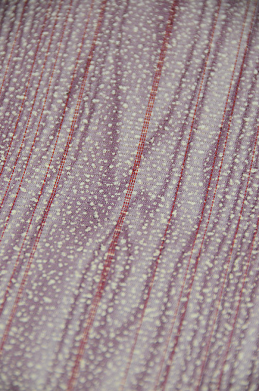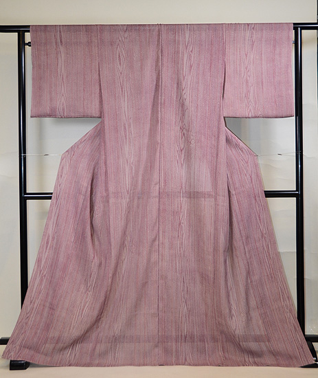 氏は東京友禅の第1人者ですが、伝統工芸に終わらず、天然自然の造形というテーマに関わってこの杢目文様を表しました。 藤色の地に蒔き糊と杢目紋のぼかしが、なぜか、霧雨をイメージさせてくれる、夏にふさわしい意匠となっています。 全体にソフトなトーンで、そこに素敵な帯が来るのが待たれます。 お仕立て付きのお値段です。