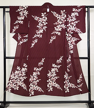 あずき色萩の小紋 ご売約済 着物19-6-40