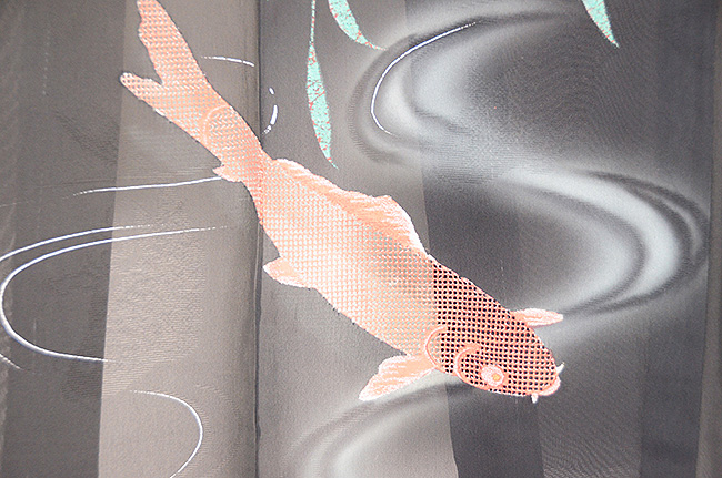 柳に流水と鯉の紋紗単衣羽織 質感・風合 柳に流水と鯉の紋紗単衣羽織 背紋