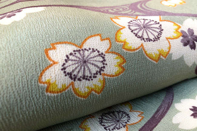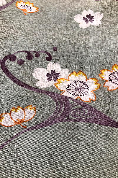 光琳水の桜文様小紋袷 着物21-02-16 ご売約済み お仕立て直し