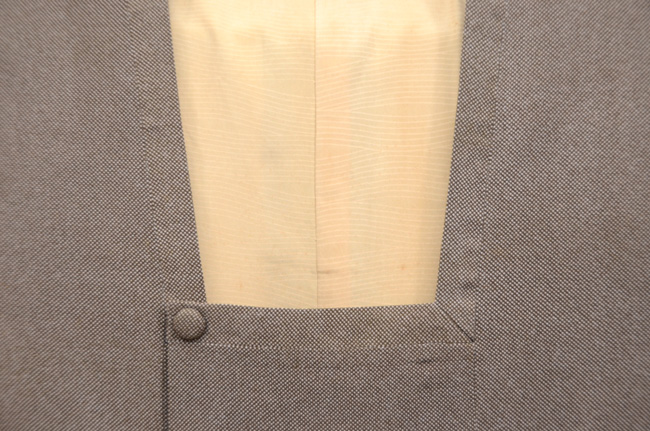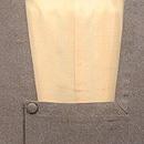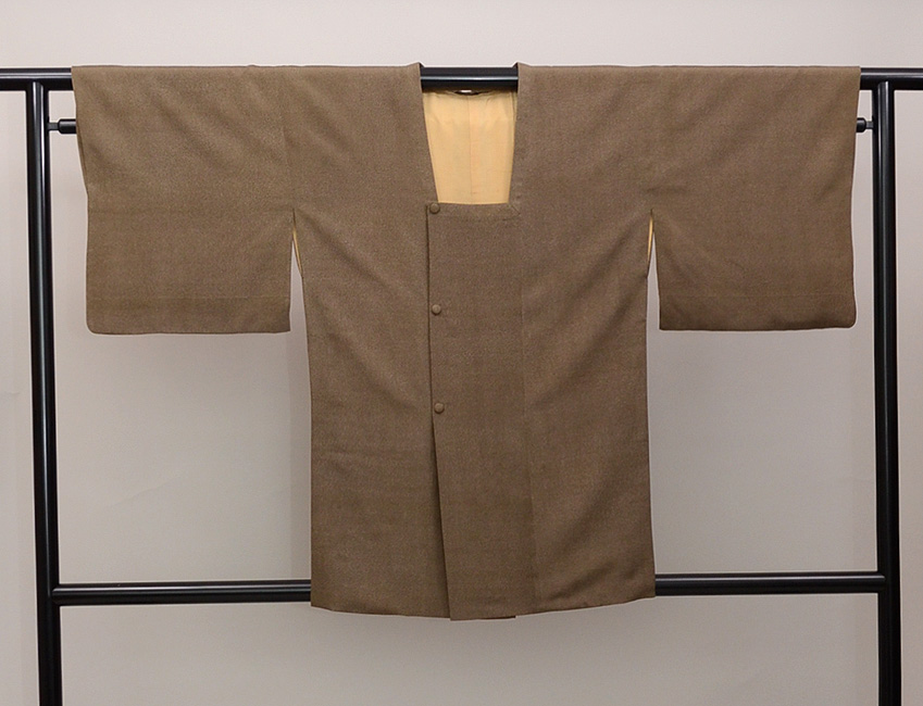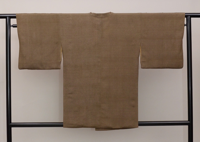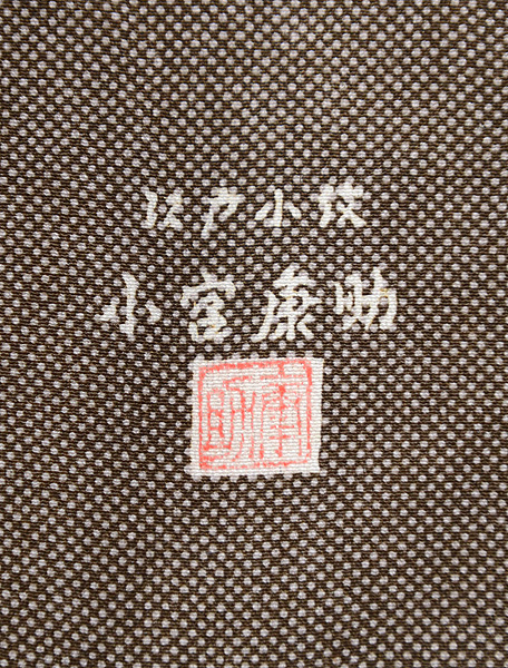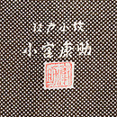 鳶色に近い渋い茶で、見事にムラのない小紋を染め抜いています。 昭和30年代は、色糊のしごきで、化学染料が染められていた時代に、おひとり白子の型を守っていたという小宮さんの、傑作の一枚であるような巧緻を尽くした型の繊細さと華麗さに脱帽です。