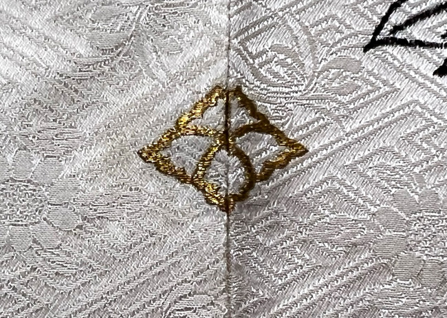 裾は、梅と楓、橘と葵という日本の花の象徴でもある高貴な花たちが描かれています。