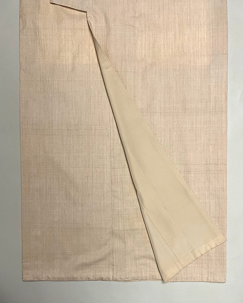 先染めの自然染料の程よいむら加減が、美しいピンクとなって現れています。 糸が細くてしなやかな感触が、そのまま優しい色と見事に重なった、素晴らしい無地結城といえます。