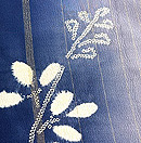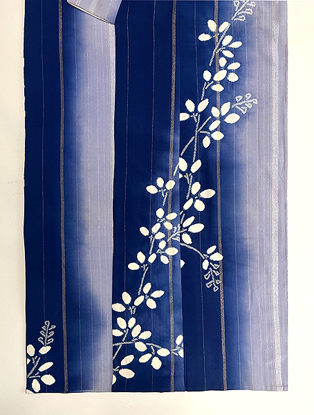 ぼかしと漆糸が織り込まれたボーダーとで、滝が流れるように涼感を誘うなかで、萩の枝が、これも溢れるように流れています。