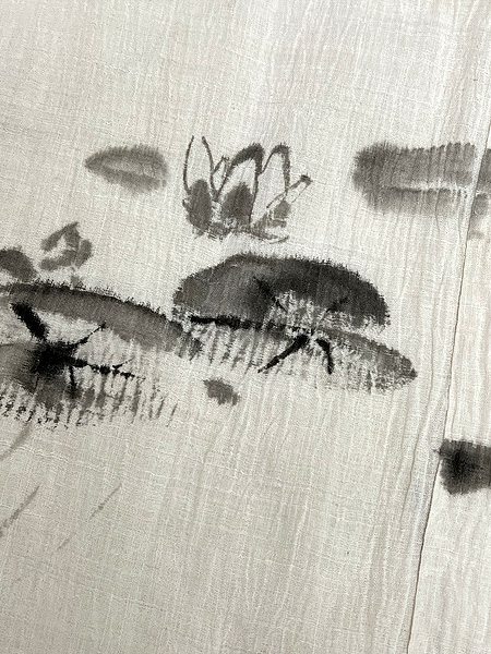 珍しい水墨画を描いた長襦袢、蜻蛉が草木にとまる風情ある図案です。