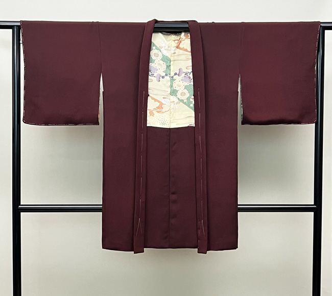 小豆色の長羽織 ご売約済着物23-02-22 お仕立て直し