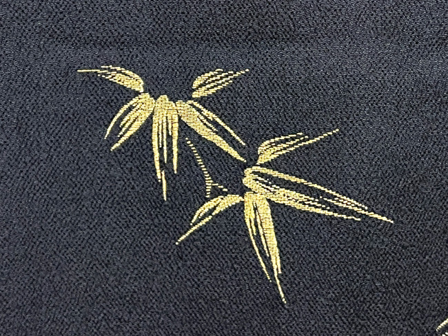 笹と雀が2羽、刺繍で表現されています。 かわいい裏地がついています。